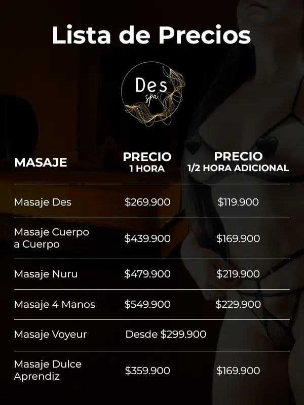 Venir a Des Spa y optar por este tipo de masaje, te aportará grandes beneficios tanto físicos como emocionales. Podrás ser parte de un divertido juego erótico, que te hará desear volver a darle a tu cuerpo, este sensual e inusual regalo. ¡Placer en todo momento!